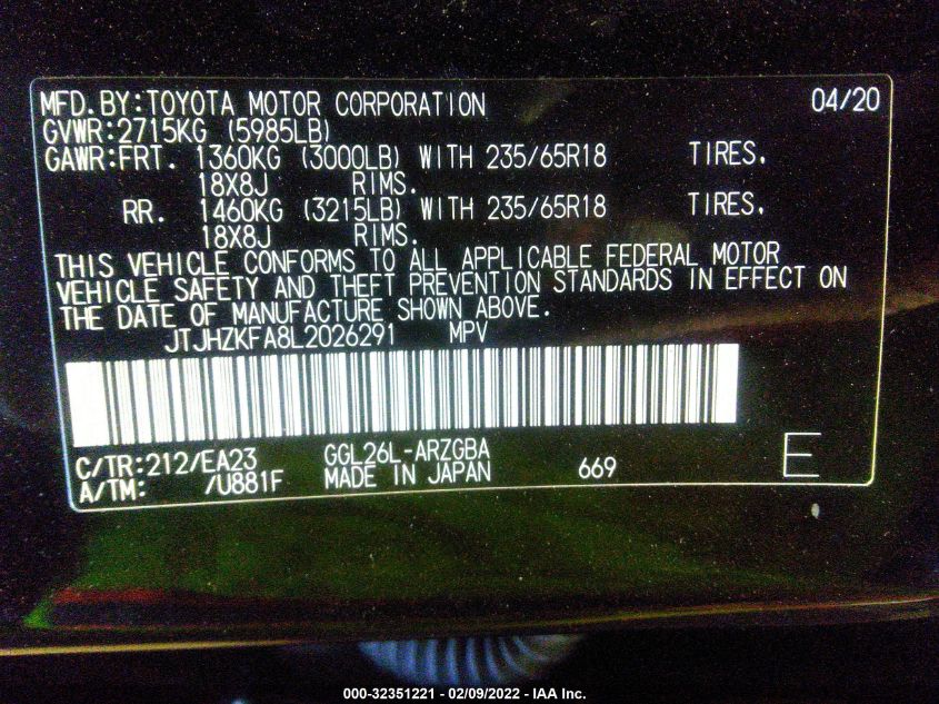 VIN: JTJHZKFA8L2026291